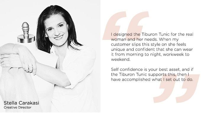 The Tiburon Tunic is the product of our designer's expert tailoring and eye for proportion and fit, fused with feedback from our customers from the last 25 years. The result is the ultimate fashion piece, the perfect starting point for any woman looking to elevate her style. This tunic sells out quickly every time we produce it and this time we are giving customers the opportunity to secure their Tiburon Tunic before the production hits the shelves.